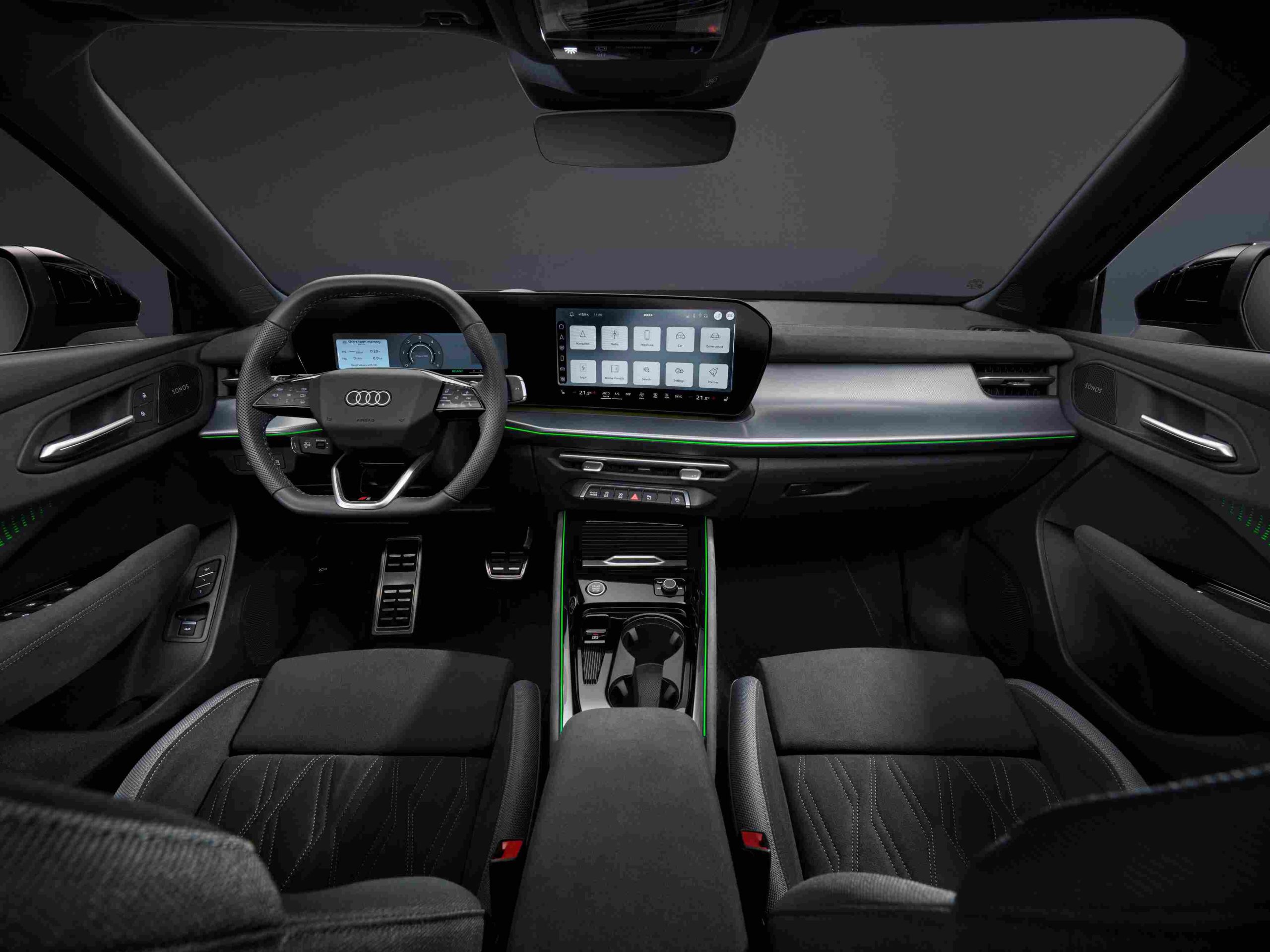 Όπως και στις εκδόσεις εσωτερικής καύσης του Q3, η νέα plug-in hybrid έκδοση ακολουθεί σχεδιαστική φιλοσοφία που βάζει στο επίκεντρο όλους τους επιβάτες. Η καμπίνα αποπνέει ευρυχωρία και premium αίσθηση, με τεχνολογία που ενσωματώνεται αρμονικά στο περιβάλλον. Το βλέμμα εστιάζει στην κυρτή πανοραμική οθόνη, η οποία συνδυάζει το Audi Virtual Cockpit Plus 11,9” με την οθόνη αφής MMI 12,8”, σε μια εργονομική και οπτικά εστιασμένη διάταξη προς τον οδηγό. Δύο νέοι μοχλοί πίσω από το τιμόνι ελέγχουν τις λειτουργίες οδήγησης και φωτισμού, προσφέροντας μεγαλύτερη ευκολία και άμεση αλληλεπίδραση. Τα πακέτα Ambient Lighting Plus/Pro, με 30 χρωματικές αποχρώσεις και φωτιζόμενες επενδύσεις στις πόρτες, προσφέρουν μοναδική ατμόσφαιρα, ενώ το ηχοσύστημα SONOS Premium (12 ηχεία, 420 W) με τέσσερα ηχητικά προφίλ δημιουργεί κορυφαία εμπειρία ακρόασης. Ο ψηφιακός Audi Assistant, με τεχνητή νοημοσύνη και avatar, επιτρέπει φωνητικό έλεγχο σε συστήματα και ρυθμίσεις, μέσα από φυσικό, προσωποποιημένο διάλογο.
