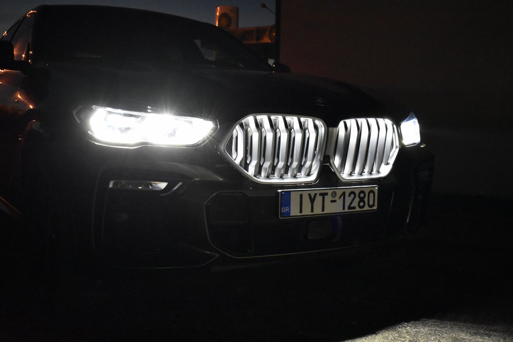 Εκτός των άλλων η X6 της δοκιμής μας διέθετε και το προαιρετικά σύστημα φωτισμού λέιζερ (Laserlight) με προβολείς Adaptive LED και εμβέλεια έως 500 μέτρα, που αναγνωρίζεται από τα μπλε στοιχεία σχήματος X στους δίδυμους προβολείς. Και η αλήθεια είναι πως η ορατότητα που προσέφερε στη νυχτερινή οδήγηση ήταν πραγματικά απίστευτη. Σε κάθε περίπτωση πάντως η X6 από όπου και αν περνούσε, πραγματικά μαγνήτιζε τα βλέμματα και προκαλούσε σχόλια θαυμασμού και εντυπωσιασμού, κάτι το οποίο δεν συνέβαινε με την X5.