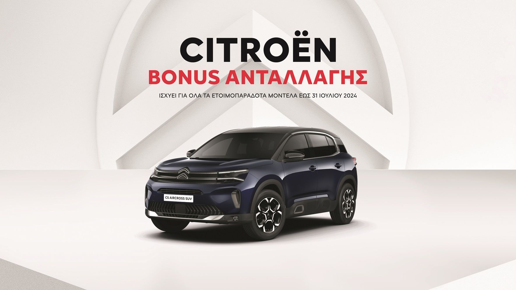 Το Bonus Ανταλλαγής ισχύει για όλη την γκάμα των επιβατικών μοντέλων της Citroën, περιλαμβανομένων των δημοφιλών SUV της μάρκας, C3 Aircross & C5 Aircross, το best seller της μάρκας Citroen C3 καθώς και AMI που απαντάει στους περιορισμούς της αστικής μετακίνησης. Με την τρέχουσα εμπορική πολιτική, τα οφέλη για τον καταναλωτή είναι πολλαπλά, αφού αφενός λαμβάνει ένα σημαντικό ποσό για το αυτοκίνητο του – που πιθανά δεν θα μπορούσε σε άλλη περίπτωση να το ανταλλάξει – και αφετέρου έχει τη δυνατότητα να αποκτήσει ένα νέο αυτοκίνητο με σαφώς χαμηλότερα έξοδα (τέλη κυκλοφορία, ασφάλιστρα, κατανάλωση καυσίμου, κ.τ.λ.). Η μάρκα, πιστή στη φροντίδα των καταναλωτών της προσφέρει 5ετή εργοστασιακή εγγύηση και οδική βοήθεια σε όλη την γκάμα των επιβατικών της μοντέλων. To Bonus ανταλλαγής της Citroёn ισχύει για ετοιμοπαράδοτα αυτοκίνητα μέχρι τις 31 Ιουλίου 2024.
