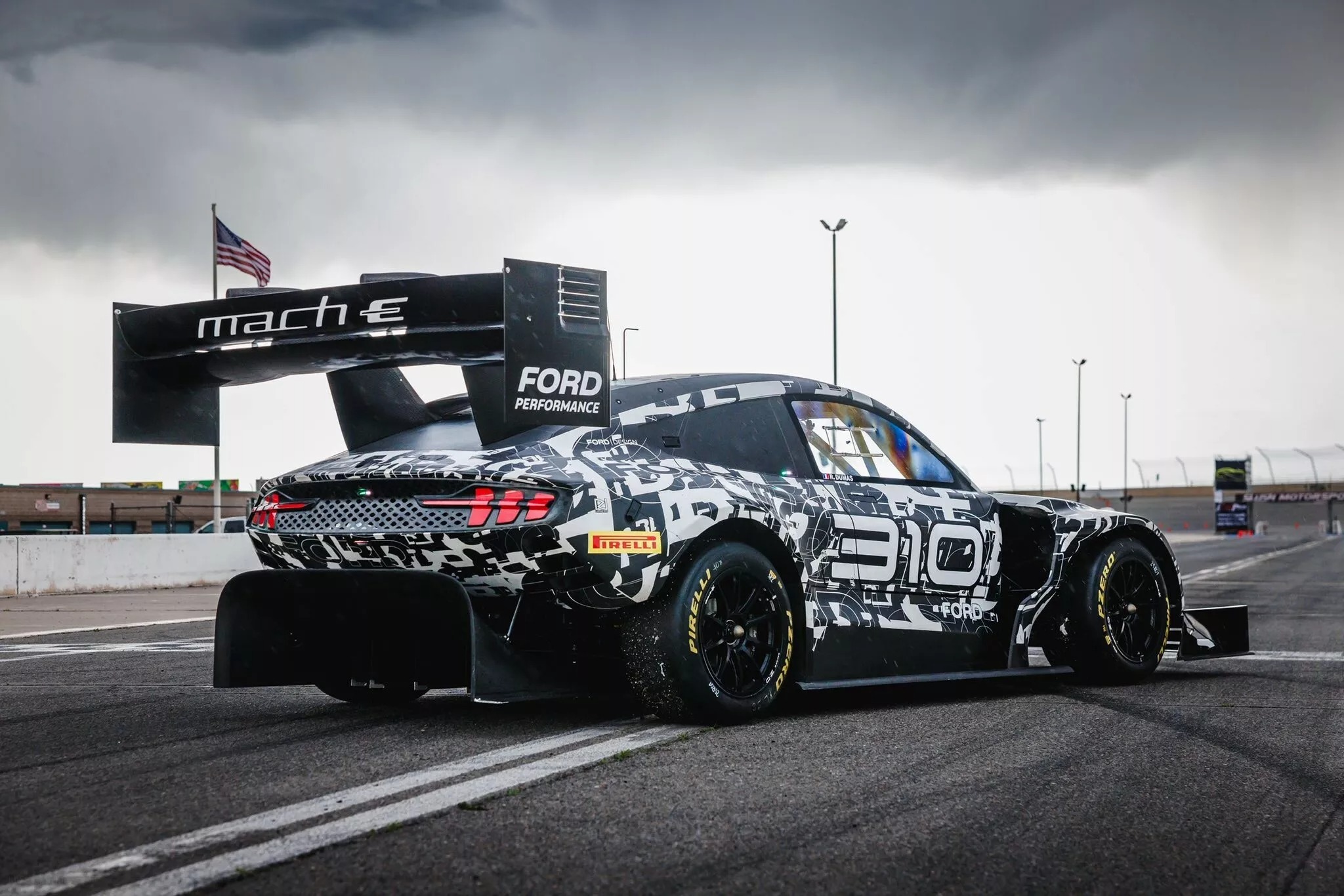 Φέτος η Ford αλλάζει πλατφόρμα και χρησιμοποιεί την Mustang Mach-E μόνο που η “Super Mustang Mach-E” είναι κάτι παραπάνω από μία αγωνιστική εκδοχή του εαυτού της. Για την δημιουργία της η Ford την μετέτρεψε σε ένα χαμηλωμένο και εξαιρετικά φαρδύ coupe και μετά προχώρησε στην αεροδυναμική μεταμόρφωση της που περιλαμβάνει μεταξύ άλλων το χαμηλό splitter, την τεράστια πίσω αεροτομή που συνεργάζεται με τον εξίσου μεγάλο διαχύτη και τα φαρδιά μαρσπιέ στα πλαϊνά του οχήματος. Σύμφωνα με την αμερικανική εταιρία όλα αυτά και πιθανώς κι άλλα που δεν φαίνονται ευθύνονται για την παραγωγή 2.780 κιλών downforce, ένα νούμερο που κάνει τα αντίστοιχα των SuperVan και SuperTruck να ωχριούν. Εννοείται δε ότι σχεδόν κάθε μέρος του αμαξώματος είναι νέο, από την γρίλια στο εμπρός μέρος, το καπό με τους διάφορους αεραγωγούς, τα φαρδύτερα φτερά και τις καμπύλες στο πίσω μέρος ενώ αξίζει να παρατηρήσουμε ότι η Super Mustang Mach-E φαίνεται αισθητά μικρότερη από το μοντέλο στο οποίο βασίζεται!