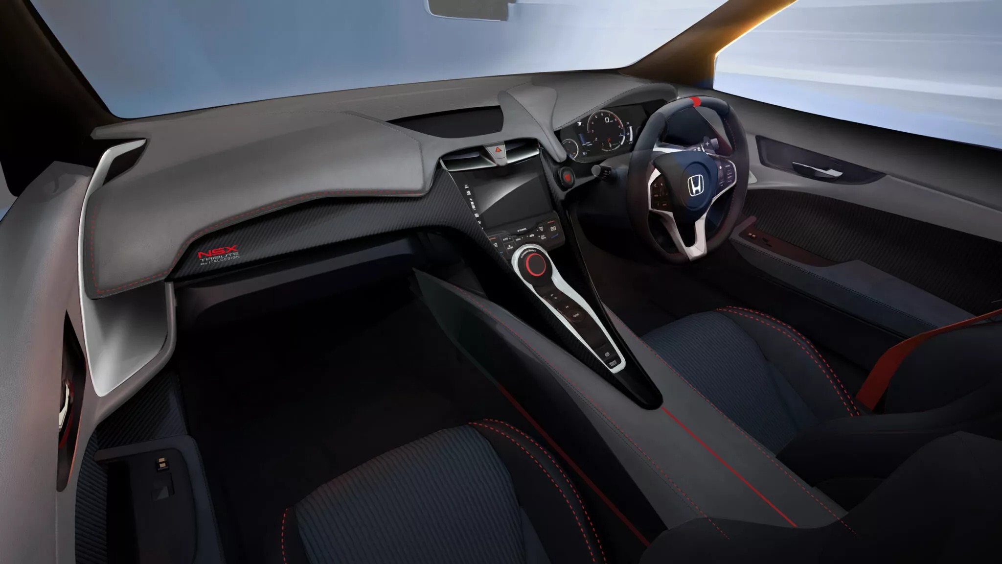 Η μάσκα είναι αναπόφευκτα προϊόν του μοντέρνου NSX με το χαμηλό ρύγχος που ενσωματώνει τα λεπτά φωτιστικά σώματα και τους πολλαπλούς αεραγωγούς τόσο στον προφυλακτήρα όσο και στο καπό. Δυστυχώς, η Italdesign δεν μπόρεσε να εξοπλίσει το “Tribute” με τα χαρακτηριστικά pop-up φανάρια αλλά είπαμε, η δημιουργία του ήταν παιχνίδι νοσταλγίας και συμβιβασμών οπότε τα αφαιρούμενα “φρύδια” θα πρέπει να είναι αρκετά . Λίγο πιο πάνω και πιο πίσω, παρατηρούμε τον μεγάλο αεραγωγό στην οροφή που είναι ένα είδος φόρου τιμής στο NSX-R GT του 2005 ενώ στο πίσω μέρος, την παράσταση κλέβει η μεγάλη αεροτομή που ενσωματώνει το τρίτο φως που παίρνει τη μορφή ενός “πλευστού δακτύλιου” όπως αναφέρει χαρακτηριστικά η Italdesign.