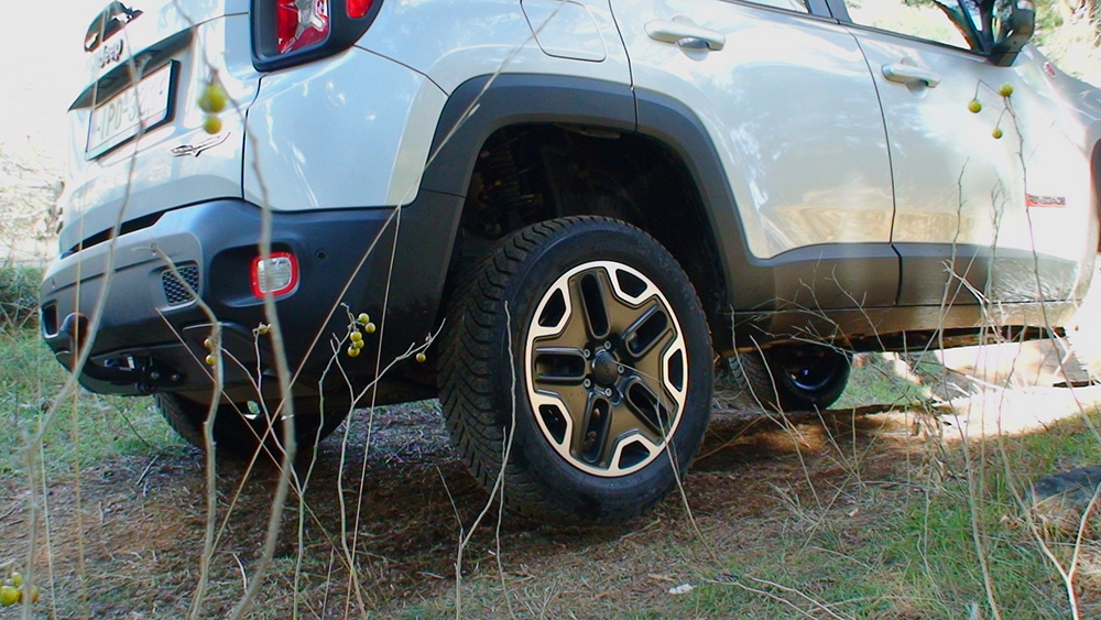 Η ονομασία βέβαια δεν είναι καινούργια, μιας και τη γνωρίζουμε από ειδικές εκδόσεις του παρελθόντος, είτε του θρυλικού CJ είτε του Cherokee. Σε κάθε περίπτωση το Jeep Renegade ξεχωρίζει από μακριά και φροντίζει να δηλώνει με τον πλέον σαφή και απερίφραστο τρόπο τη καταγωγή του και κατά τη γνώμη μας πολύ καλά κάνει. Στη περίπτωση μάλιστα της κορυφαίας έκδοσης Trailhawk της δοκιμής μας, η ακόμη πιο αυξημένη απόσταση, κατά δύο εκατοστά (συνολικά 22) από το έδαφος, τα ελαστικά για χιόνι και λάσπη, οι διαφορετικής σχεδίασης ζάντες και το λογότυπο Trail Rated, δηλώνουν με απερίφραστο τρόπο πως αυτό το Renegade είναι φτιαγμένο για τα δύσκολα.