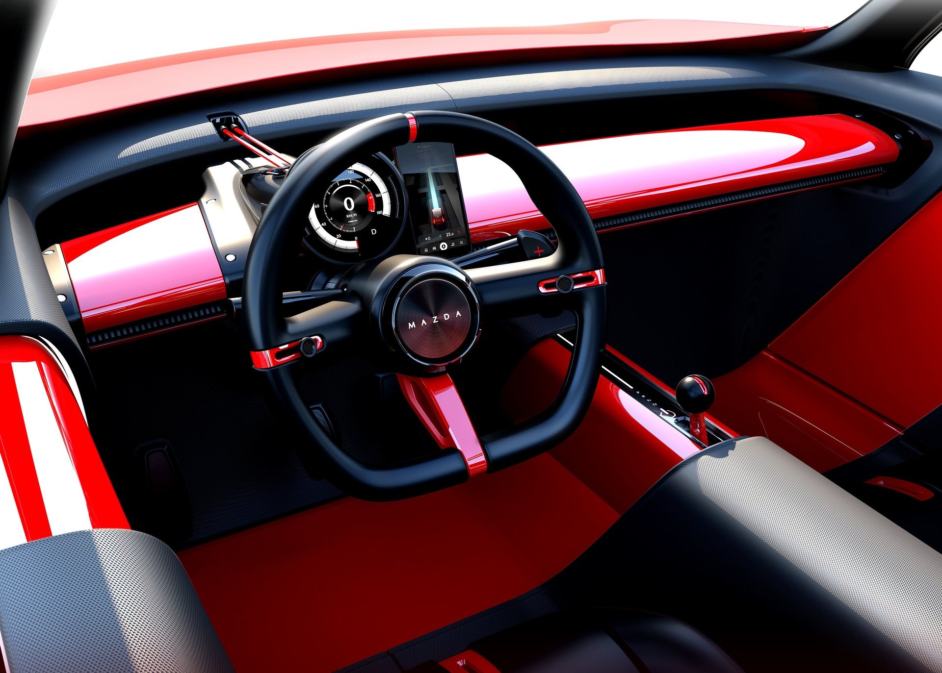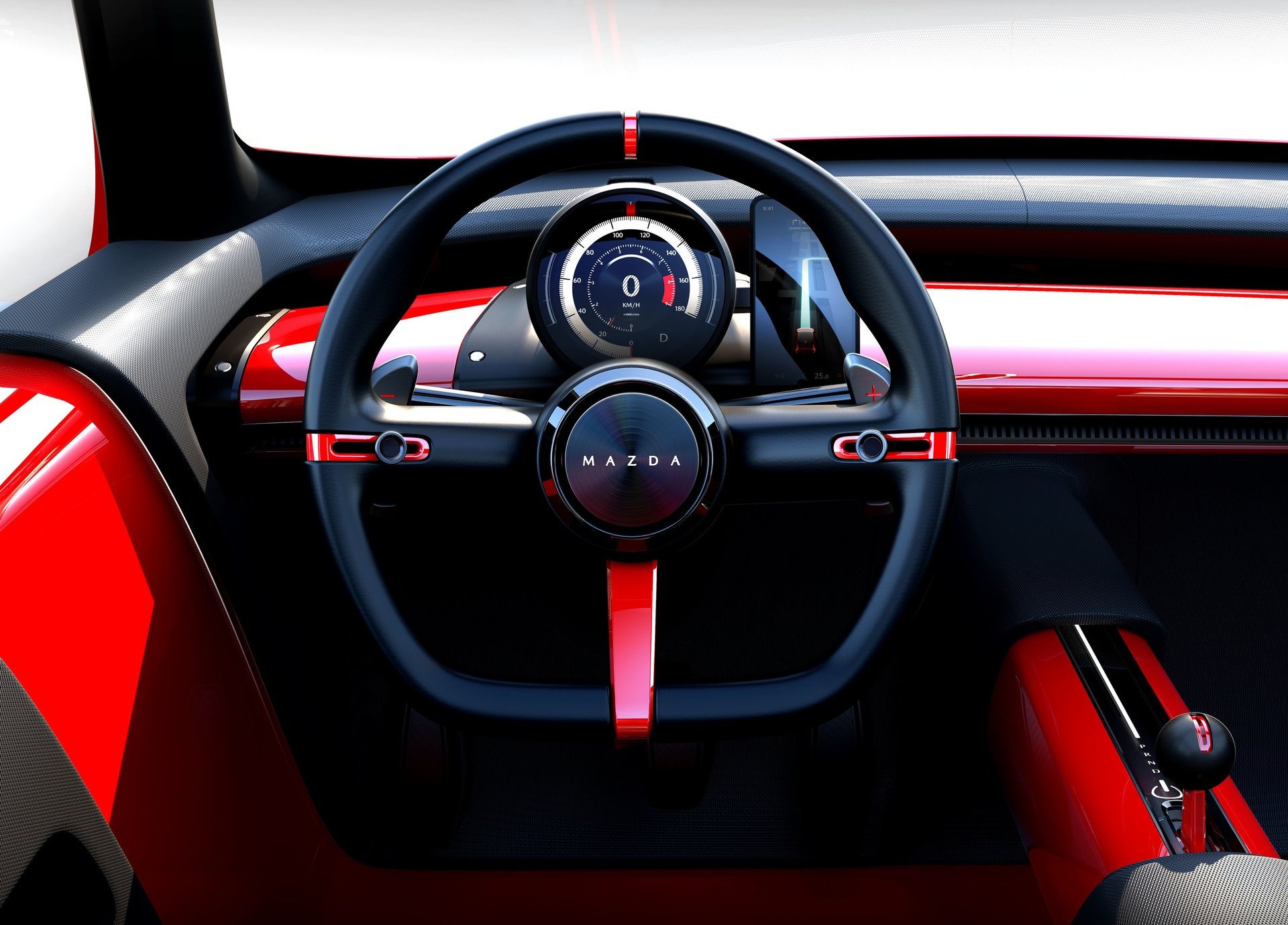Την παράσταση κλέβει ο κυκλικός, ψηφιακός πίνακας οργάνων, το όμορφο τιμόνι με το επίπεδο κάτω μέρος και η πλήρης κατάργηση του συστήματος ψυχαγωγίας και ενημέρωσης που βασίζεται στην λογική ότι ο καθένας μας κουβαλά πάνω του έναν φορητό υπολογιστή που ούτως ή άλλως χρησιμοποιεί για τα πάντα – από την ενημέρωση μέχρι την επικοινωνία και από την ψυχαγωγία μέχρι την συνδεσιμότητα. Περιμένουμε να δούμε τι σκοπεύει να κάνει η Mazda με το Vision X-Compact αν και όπως προαναφέραμε, θα ήταν κρίμα και άδικο να μην μετουσιωθεί σε ένα μοντέλο παραγωγής χωρίς να χάσει τα στοιχεία που κάνουν το concept τόσο ελκυστικό.