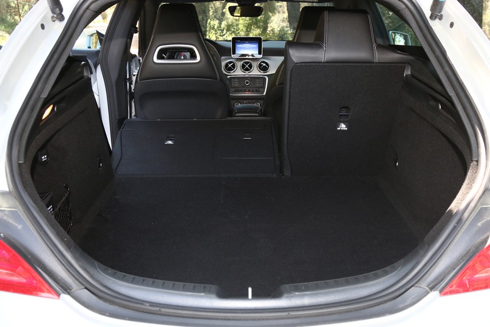 Mπαίνοντας στο εσωτερικό της CLA Shooting Brake μην περιμένετε να εντοπίσετε σχεδιαστικές ή άλλες διαφορές. Αυτό διότι η εικόνα είναι παντελώς ίδια με αυτή που γνωρίζαμε από την τετράθυρη Cla, με την υψηλή ποιότητα κατασκευής και υλικών, ενώ ένας έντονος τριγμός από το ταμπλό νομίζουμε πως είναι ένα πρόσκαιρο θέμα του συγκεκριμένου αυτοκινήτου. Το τριάκτινο πολυλειτουργικό τιμόνι και οι ιδιαίτερης σχεδίασης και καλαισθησίας αεραγωγοί συμπληρώνουν τα σπορτίφ χαρακτηριστικά του εσωτερικού. Περνώντας στους διαθέσιμους χώρους, αυτοί θα ικανοποιήσουν τέσσερα ενήλικα άτομα και μόνο αν οι πίσω επιβάτες είναι σχετικά ψηλοί θα νιώσουν κάπως κλειστοφοβικά, καθώς τα τέσσερα επιπλέον εκατοστά για τα κεφάλια τους, σε σχέση με την τετράθυρη Cla, είναι ικανά να κάνουν τη διαφορά.