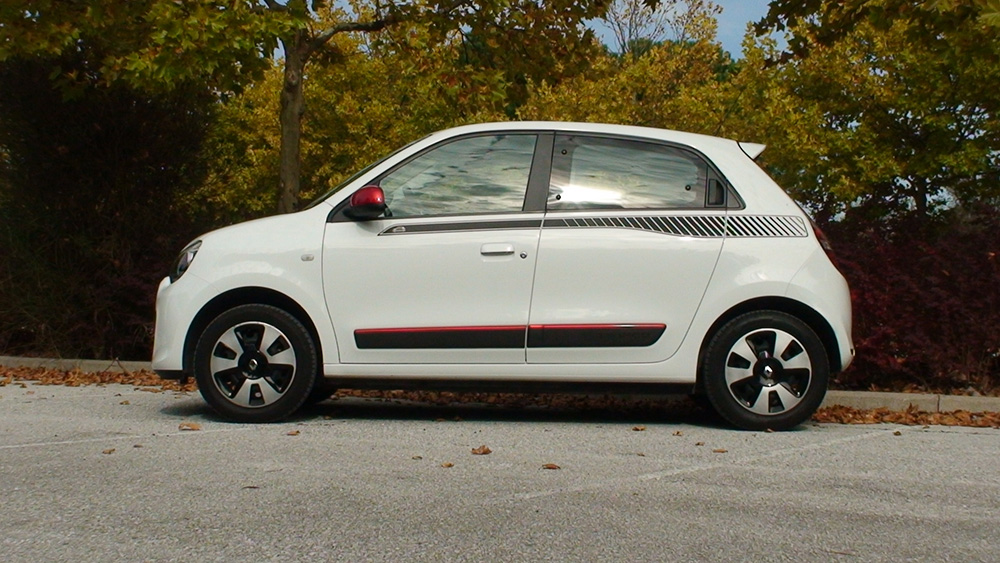 Πόσο δυναμικό μπορεί να δείξει ένα αυτοκίνητο πόλης; Στο Twingo ισχύει καθώς είναι μυώδες και χαριτωμένο συγχρόνως με μεγάλα φωτιστικά, γλυπτές επιφάνειες, διπλά φώτα εμπρός και μία αίσθηση τρίθυρου χάρη στις πίσω χειρολαβές που είναι «κρυμμένες» στο αμάξωμα. Να σημειώσουμε ότι διατίθεται αποκλειστικά σε πεντάθυρη έκδοση. Εκείνο όμως που μου άρεσε περισσότερο είναι το πίσω μέρος που, χωρίς να γίνομαι ιερόσυλος, μου θυμίζει έντονα 5 Turbo για να μην σας πώ Maxi! Εσωτερικά συναντάς ένα άνετο και φιλόξενο περιβάλλον, με μεγάλα (για την κατηγορία) και άνετα καθίσματα στα οποία θα φιλοξενηθούν τέσσερα άτομα χωρίς ιδιαίτερες παραχωρήσεις ακόμη και για ένα σύντομο ταξίδι, έχοντας στην διάθεσή τους αρκετούς και μεγάλους χώρους για μικροαντικείμενα. Σε αντίθεση ο χώρος αποσκευών περιορίζεται στα 188 λίτρα και βρίσκεται μόνο πίσω πάνω από τον κινητήρα αφού εμπρός υπάρχουν διάφορα δοχεία υγρών του αυτοκινήτου. Η θέση οδήγησης είναι κάπως ψηλή και η ορατότητα προς όλες τις κατευθύνσεις είναι ιδιαίτερα καλή, μεγάλα προσόντα και τα δύο για αυτοκίνητο πόλης.