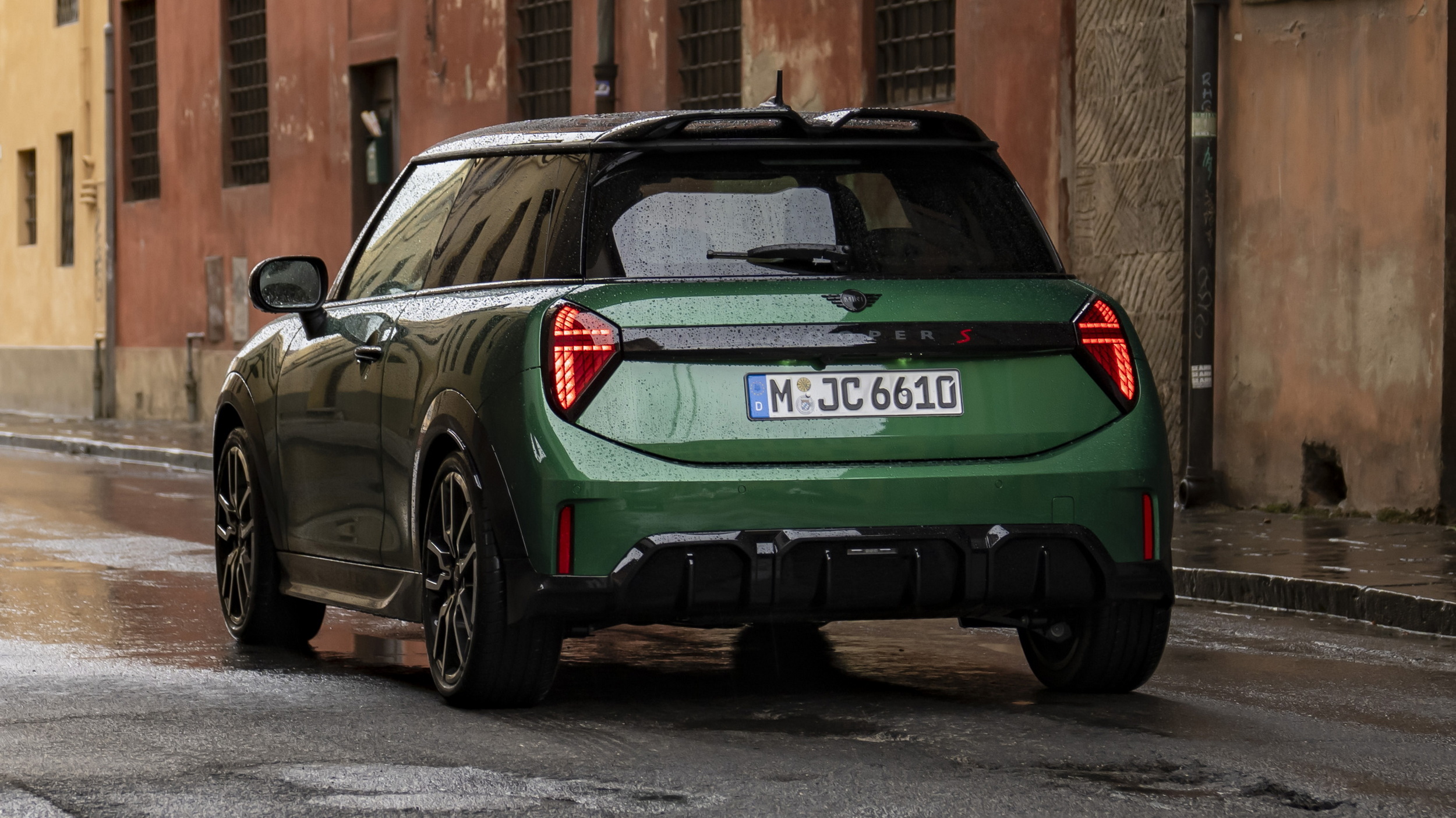Με χαρακτηριστικούς διαχύτες εμπρός και πίσω, η έκδοση JCW του MINI Cooper S εστιάζει στις επιδόσεις που απηχούνται και στο ανάγλυφο λογότυπο John Cooper Works, στο οποίο τα “καθαρά” περιγράμματα παρουσιάζονται στον παραδοσιακό συνδυασμό χρωμάτων κόκκινο-λευκό-μαύρο χρώμα και την χαρακτηριστική σημαία. Αυτές οι ειδικές για την έκδοση λεπτομέρειες εξοπλισμού είναι ιδιαίτερα ορατές στην οκταγωνική μάσκα που είναι βαμμένη σε γυαλιστερό μαύρο χρώμα. Το χρώμα της οροφής από την άλλη, δημιουργεί αντίθεση και τα μαύρα καλύμματα των καθρεφτών αναδεικνύουν τη συνολική εικόνα. Οι δαγκάνες φρένων JCW που είναι βαμμένες σε μαύρο χρώμα και κοσμούνται από το σήμα JCW, σε συνδυασμό με τα αποκλειστικά σχέδια ζαντών με διάμετρο 17 και 18 ίντσες, ενισχύουν τη δυναμική εμφάνιση του MINI Cooper S στην έκδοση JCW.